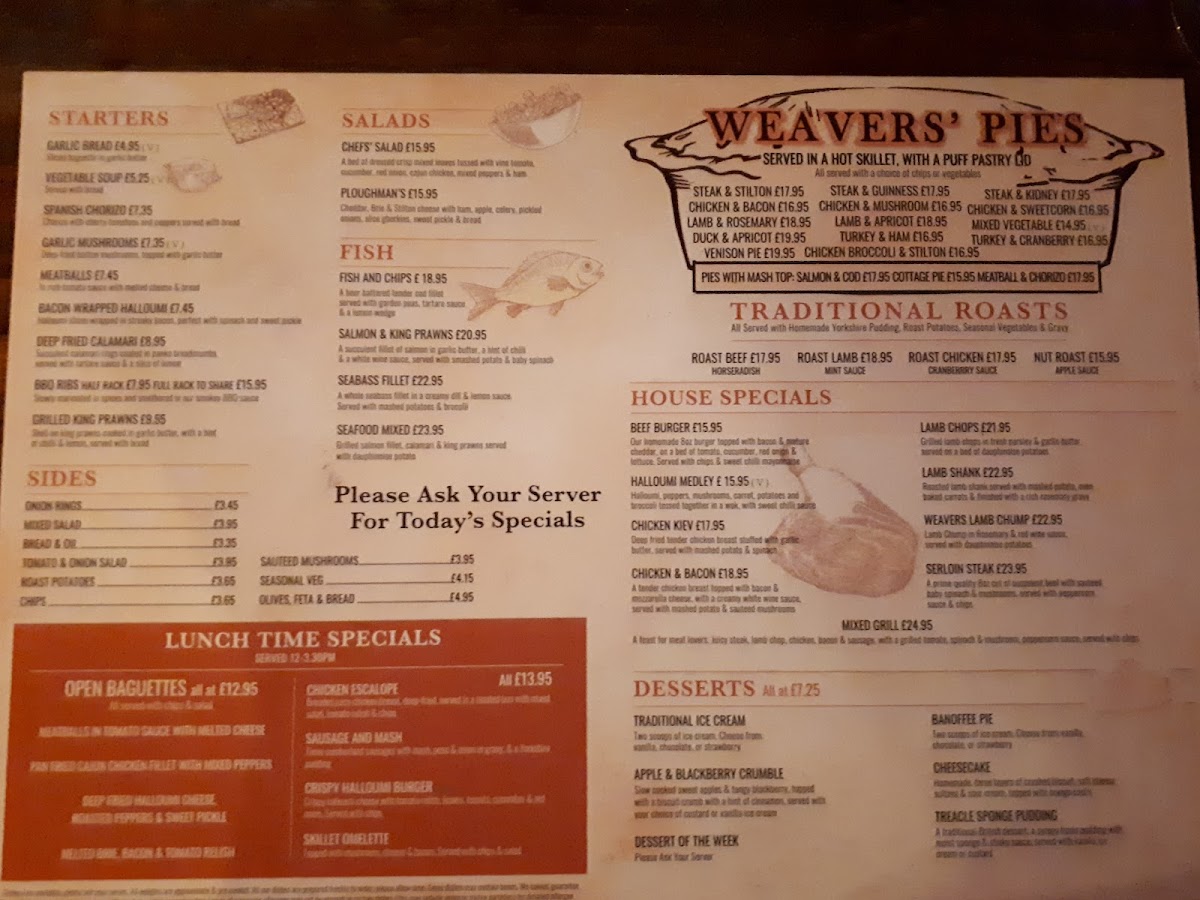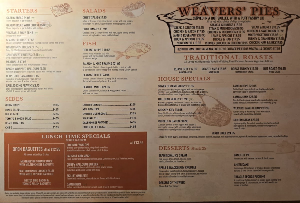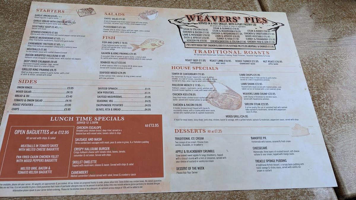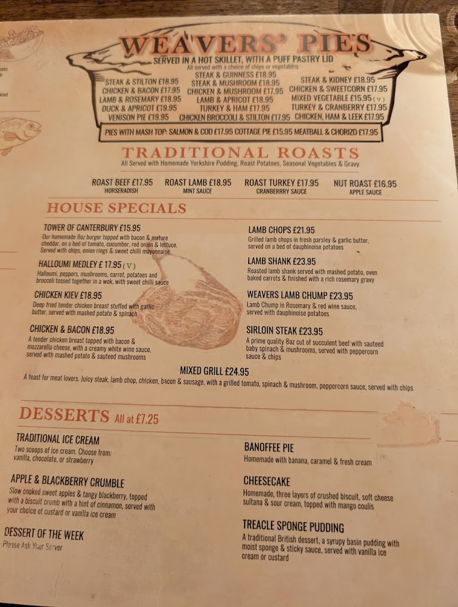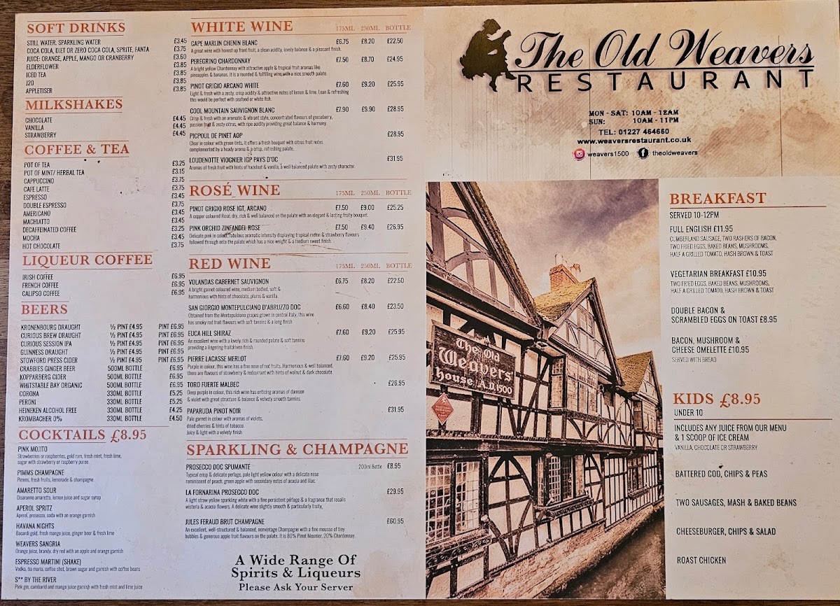 In conclusion, the Old Weavers House Menu is more than a list of dishes-it’s a celebration of British culinary heritage, thoughtfully adapted for today’s diners. Ideal for family meals, romantic dinners, or a special outing in Canterbury, it delivers consistency, character, and comfort in every course.